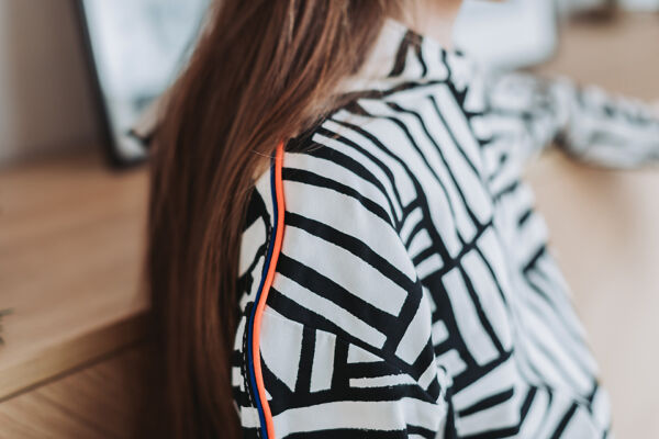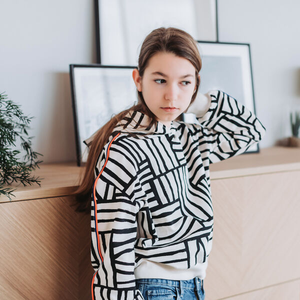 Sweatshirtstoff ist ein etwas dickerer Jerseystoff. Die Rückseite kann weich oder aber auch aufgerauht sein. Wenn sie weich ist, so spricht man von einem Sommersweat oder French Terry. Der Stoff eignet sich für Hoodies, Pullover, etwas wärmere Hosen, Kleider, Jogginganzug usw. Denk aber bei der Stoffberechnung daran, dass der Stoff bis zu 10% eingehen kann. Daher den Stoff unbedingt vor dem Verarbeiten waschen. Waschmittel ohne Bleiche benutzen, es nimmt dem Stoff sonst die Farbe.