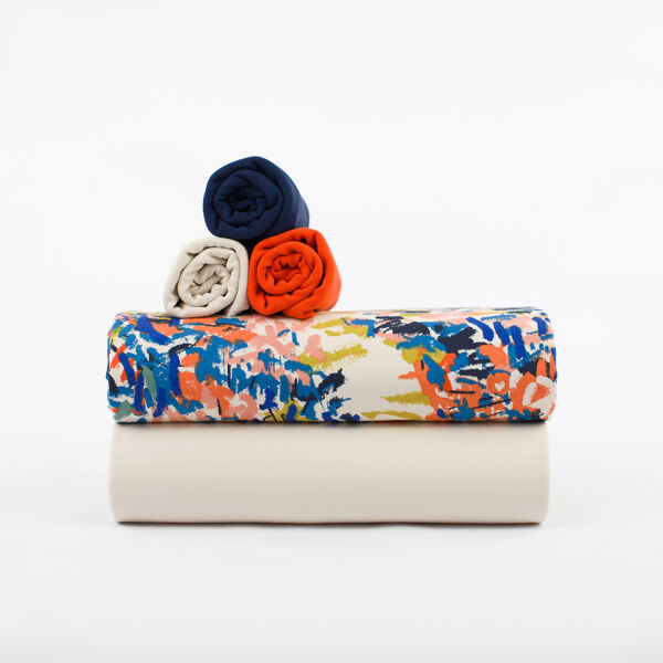Sweatshirtstoff ist ein etwas dickerer Jerseystoff. Die Rückseite kann weich oder aber auch aufgerauht sein. Wenn sie weich ist, so spricht man von einem Sommersweat oder French Terry. Der Stoff eignet sich für Hoodies, Pullover, etwas wärmere Hosen, Kleider, Jogginganzug usw. Denk aber bei der Stoffberechnung daran, dass der Stoff bis zu 10% eingehen kann. Daher den Stoff unbedingt vor dem Verarbeiten waschen. Waschmittel ohne Bleiche benutzen, es nimmt dem Stoff sonst die Farbe.