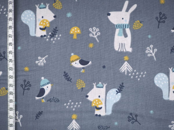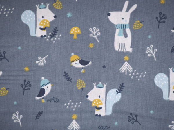 Graue Baumwolle mit Eichhörnchen und Hasen