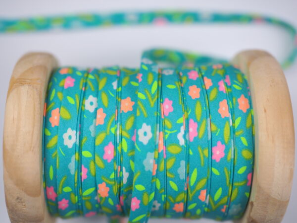 Das Schrägband hat eine Breite von 27mm. Es eignet sich zum Einfassen von zum Beispiel: Schürzen, Wimpelketten und Säumen.