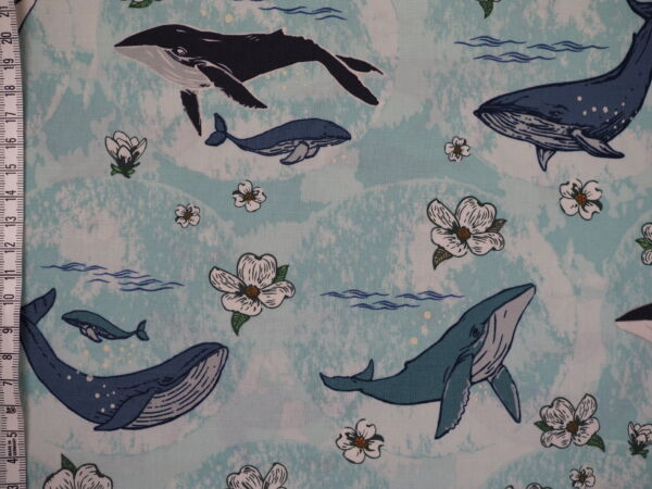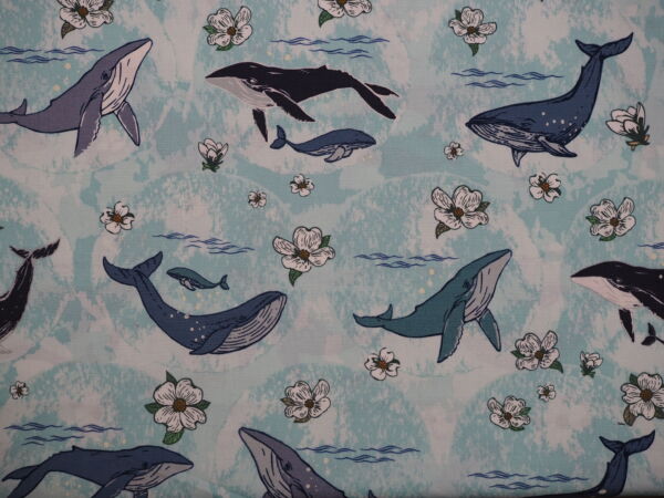 Integriere die Eleganz und Anmutigkeit dieser Grauwalfamilie in dein Nähprojekt. Die Baumwolle entsteht aus einer Pflanze (natürliches Produkt) und ist vielseitig einsetzbar. Sei es in der den Bereichen Deko und Accessoires (Taschen) oder aber auch im Bekleidungsbereich.