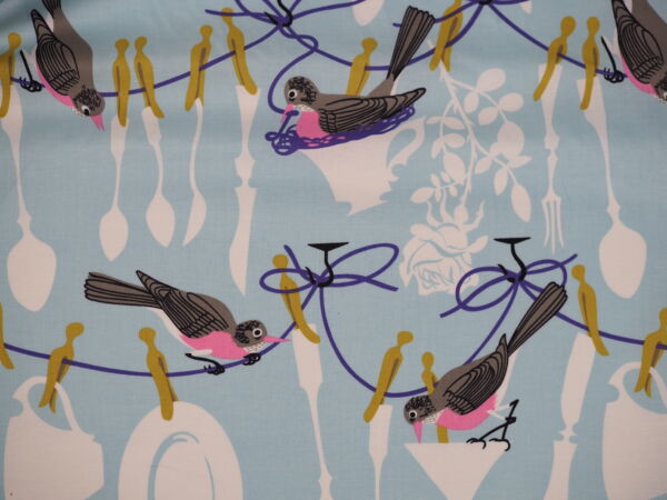 Die dünne Baumwolle ist nicht dehnbar und lässt sich gut waschen. Denk aber bei der Stoffberechnung daran, dass der Stoff bis zu 10% eingehen kann. Daher den Stoff unbedingt vor dem Verarbeiten waschen. Waschmittel ohne Bleiche benutzen, es nimmt dem Stoff sonst die Farbe. Der passende 200m Polyesterfaden von MEZ ist die Farbnummer 3521.