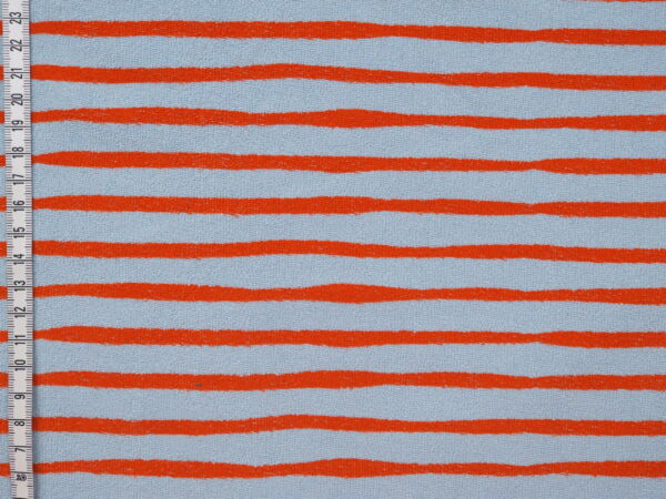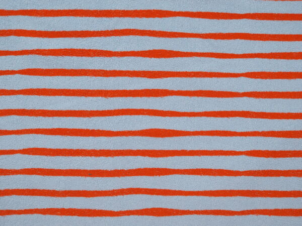 Sommerfrotteist ein etwas dickerer Jerseystoff. Die Rückseite kann weich oder aber auch aufgerauht sein. Der Stoff eignet sich für Hoodies, Pullover, Strandkleider, Hosen, Kleider, Jogginganzug usw. Denk aber bei der Stoffberechnung daran, dass der Stoff bis zu 10% eingehen kann. Daher den Stoff unbedingt vor dem Verarbeiten waschen. Waschmittel ohne Bleiche benutzen, es nimmt dem Stoff sonst die Farbe. Der passende 200m Polyesterfaden von MEZ ist die Farbnummer 2066