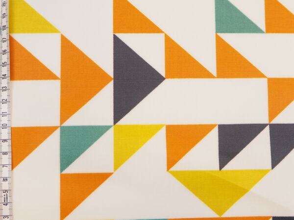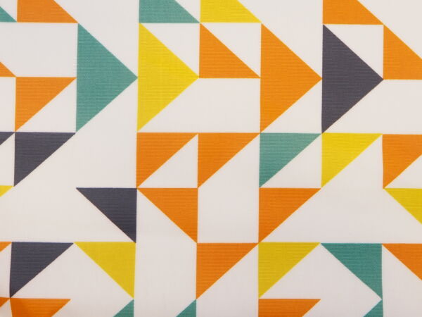 Natur/gelb/orange/petrol/marine dickeres Wachstuch mit geometrischem Muster