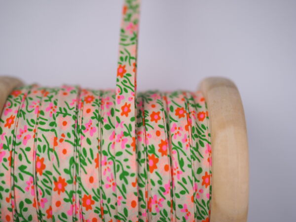 Das Schrägband hat eine Breite von 27mm. Es eignet sich zum Einfassen von zum Beispiel: Schürzen, Wimpelketten und Säumen.