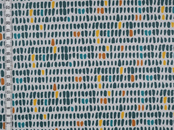 Nature Wachstuch mit mit rost, senf und petrol Strichen