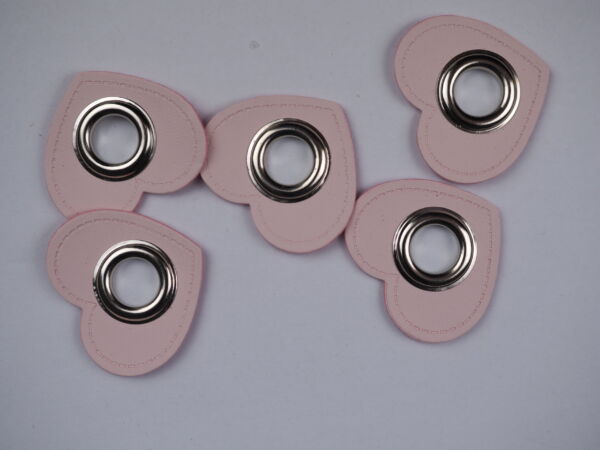 Die Öse hat einen Durchmesser von 11mm, das Herz 5cm. Beachte, dass Du zum Aufnähen am besten das Reissverschlussfüschen an der Nähmaschine montierst.