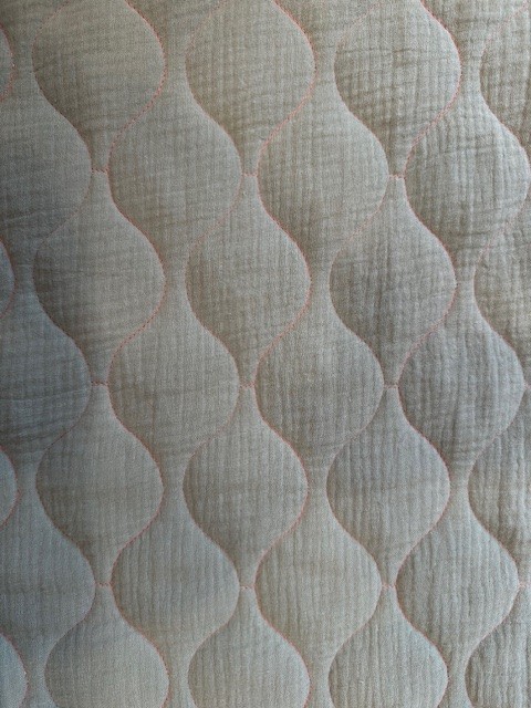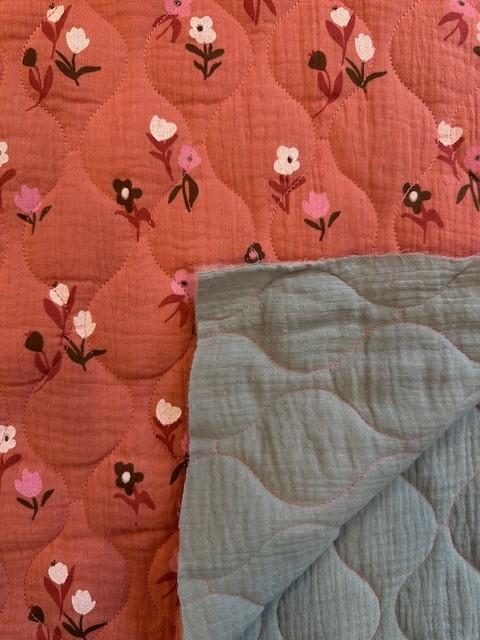 Entdecke den verspielten Charme unsres Doublefacesteppstoffs! Auf der einer Seite erstrahlt er in einem lebhaften pfirsichton , während die andere Seite in einem ruhigen mint begeistert. dieser Stoff bringt Farbe und Frische in Dein Nähprojekt!