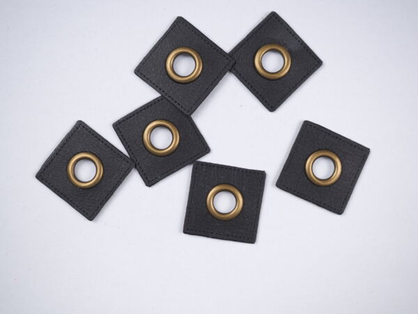 Der Patch hat einen Durchmesser von 25mm, die Öse 8mm. Beachte, dass Du zum Aufnähen am besten das Reissverschlussfüschen an der Nähmaschine montierst.