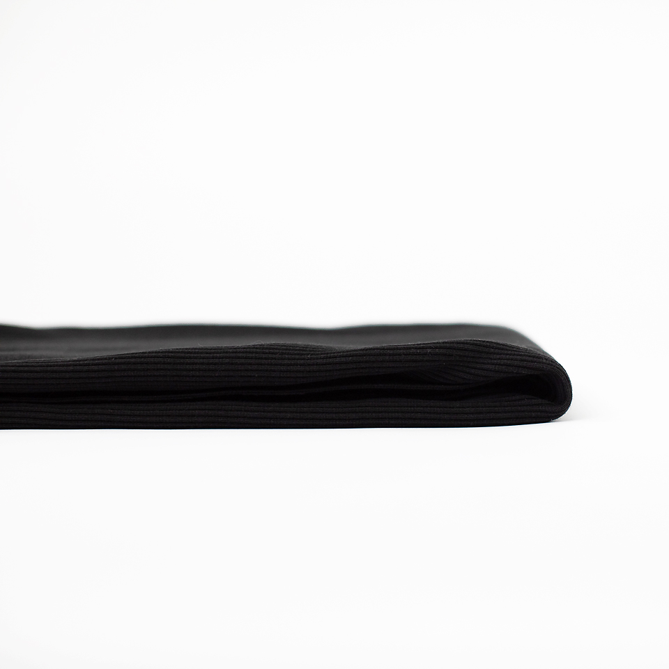 Bündchenstoffe brauchst Du als Abschluss bei Ärmel, Beinen, Bauch oder Halsausschnitte. Bei uns findest Du drei verschiedene Arten von Bündchenstoff. Den ganz Glatten hier, den mittleren mit Rippen, oder den ganz dick gerippten Bündchenstoff. Als Formel zur Berechnung der Länge des Bündchens misst du die fertige Länge am Objekt und multiplizierst die Summe mal 0.8. Dazu gibst du noch 1.5cm Nahtzugabe. So hast du die richtige Länge. Wenn du einen Bund am Bauch machen möchtest, empfehle ich Dir, den gleich mit dem Bündchenstoff an der Person zu messen. Es kann sonst sein, dass er zu weit oder zu eng ist und das wäre schade.