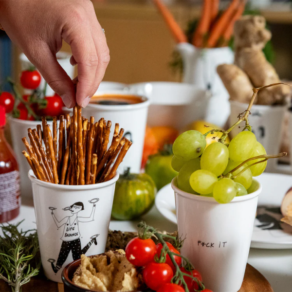 Eine muntere Tasse mit lustigen, schönen und wichtigen Botschaften.