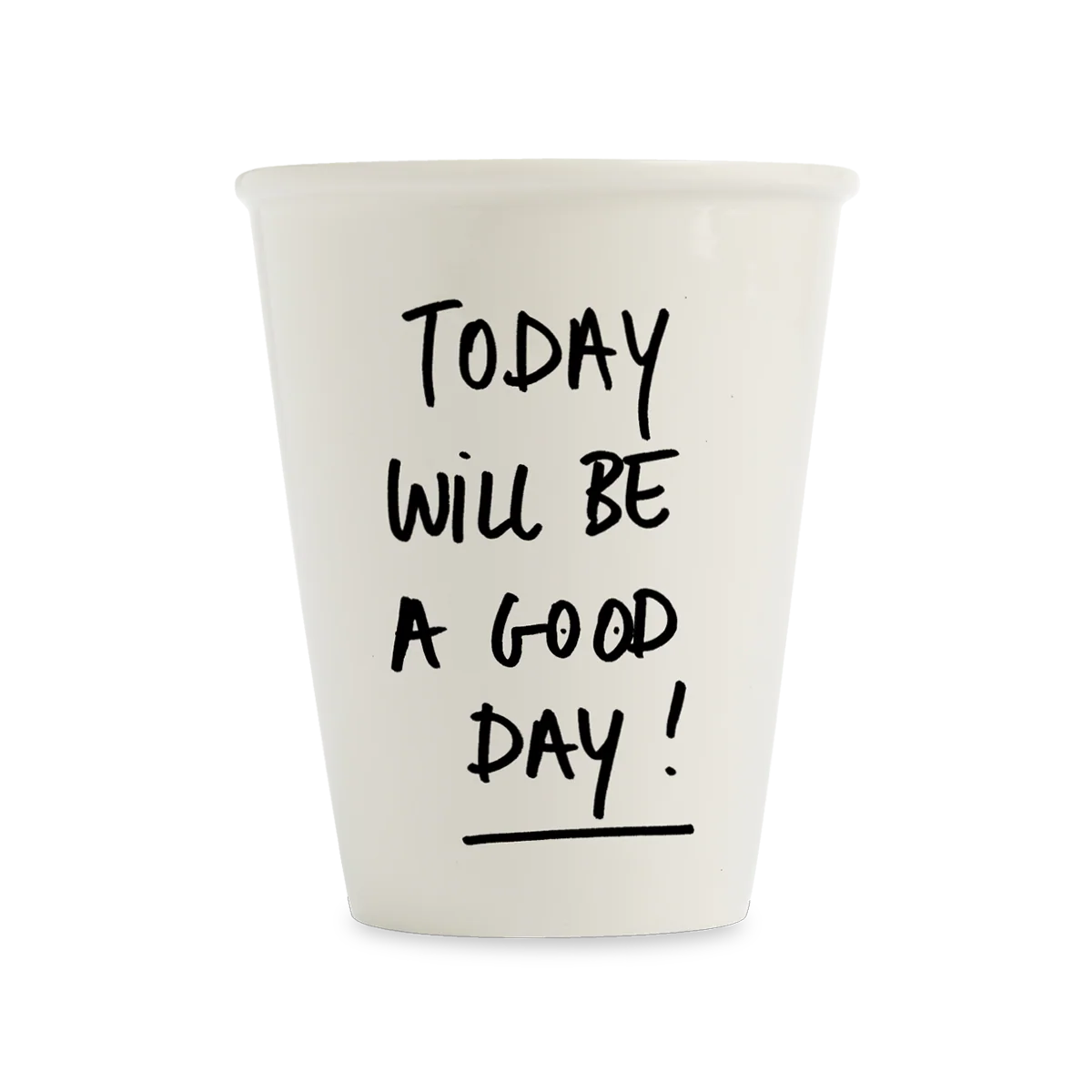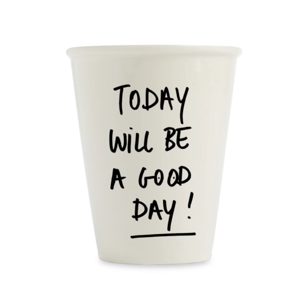 Eine muntere Tasse mit lustigen, schönen und wichtigen Botschaften.