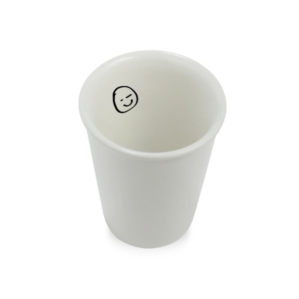 Die Tasse ist 9.5 cm hoch und hat einen Durchmesser von 8 cm.