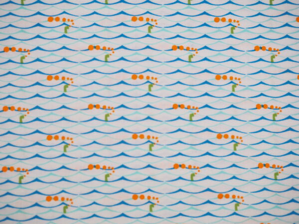 Die dünne Baumwolle ist nicht dehnbar und lässt sich gut waschen. Denk aber bei der Stoffberechnung daran, dass der Stoff bis zu 10% eingehen kann. Daher den Stoff unbedingt vor dem Verarbeiten waschen. Waschmittel ohne Bleiche benutzen, es nimmt dem Stoff sonst die Farbe. Der passende 200m Polyesterfaden von MEZ ist die Farbnummer 4000.