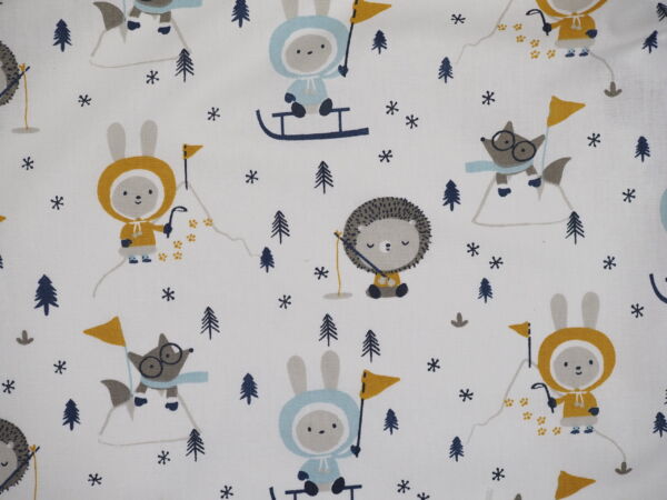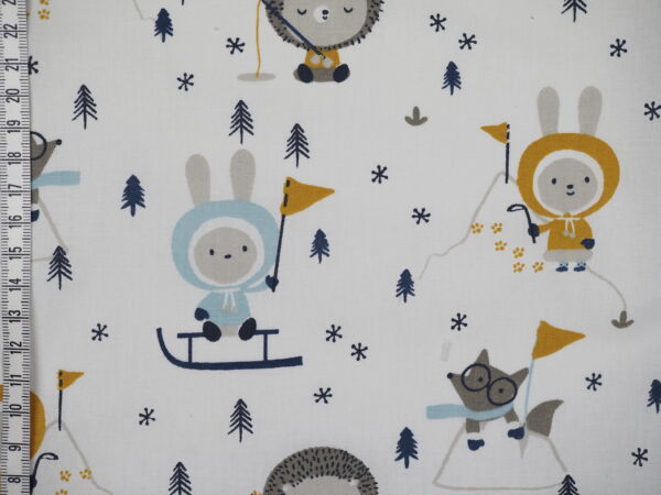 Weisse Baumwolle, tierische Freunde im Schneespass