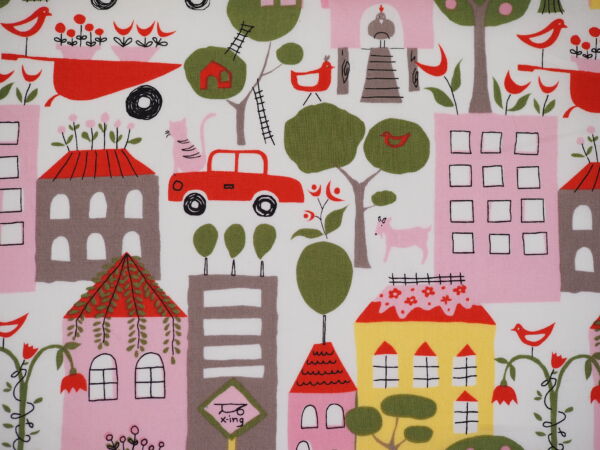 Ein aufregendes Stadtgewimmel wo sich Tiere, Pflanzen und Menschen wohlfühlen. Hast du die Katze auf dem Auto bereits gesehen? Die Baumwolle entsteht aus einer Pflanze (natürliches Produkt) und ist vielseitig einsetzbar. Sei es in der den Bereichen Deko und Accessoires (Taschen) oder aber auch im Bekleidungsbereich.
