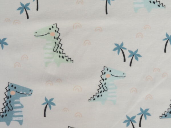 Der Jersey ist dehnbar und lässt sich gut waschen. Denk aber bei der Stoffberechnung daran, dass der Stoff bis zu 10% eingehen kann. Daher den Stoff unbedingt vor dem Verarbeiten waschen. Waschmittel ohne Bleiche benutzen, es nimmt dem Stoff sonst die Farbe. Der passende 200m Polyesterfaden von MEZ ist die Farbnummer 3009.