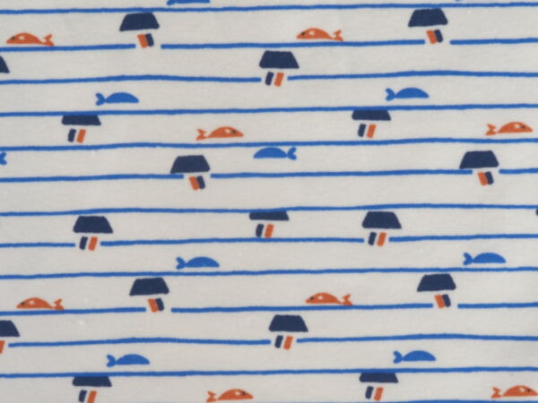 Der Jersey ist dehnbar und lässt sich gut waschen. Denk aber bei der Stoffberechnung daran, dass der Stoff bis zu 10% eingehen kann. Daher den Stoff unbedingt vor dem Verarbeiten waschen. Waschmittel ohne Bleiche benutzen, es nimmt dem Stoff sonst die Farbe. Der passende 200m Polyesterfaden von MEZ ist die Farbnummer 2000.