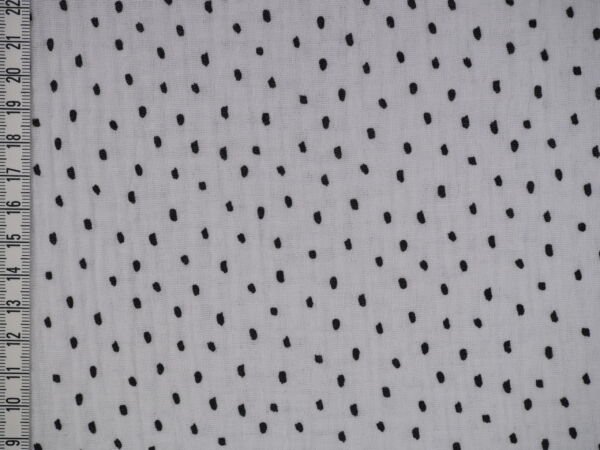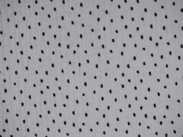 Weisser Musselin mit unregelmässigen, schwarzen Punkten